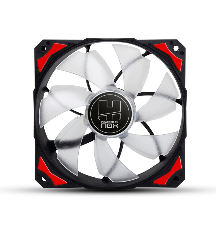 NOX H-Fan LED. Adequado para: Pasta de computador, Modelo: Ventoinha, Diâmetro do ventilador: 12 cm. Cor da caixa: Preto, Vermelho, Branco, Iluminação: LED, Cor de iluminação: Vermelho. Corrente nominal de linha: 0,14 A, Consumo de energia: 0,168 W, Alimentação: 3 W. Peso do produto: 130 g, Dimensões da ventoinha (L x P x A): 120 x 120 x 25 mm. Tipo de esfriamento: Hydraulic
