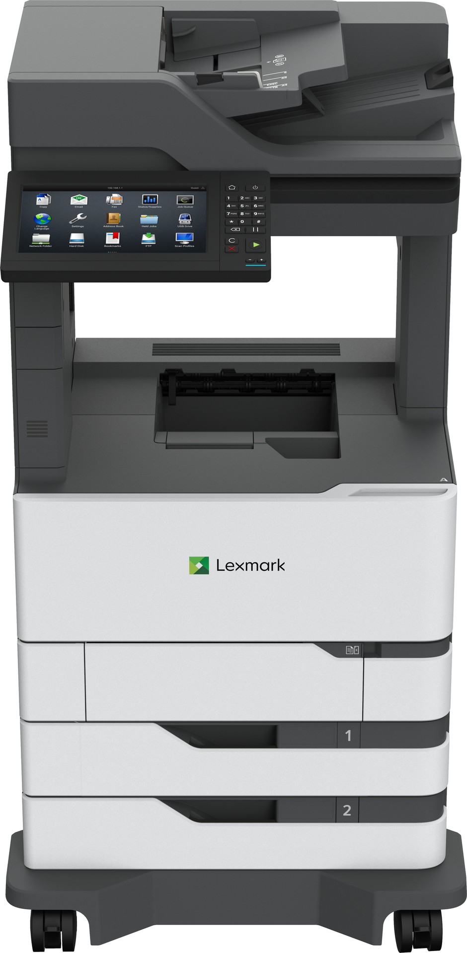 Lexmark XM7370. Tecnologia de impressão: Laser, Impressão: Impressão monocromática. Resolução Máxima: 1200 x 1200 DPI. Cópia: Fotocopiadora a preto e branco, Digitalização: Digitalização a cores, Envio de fax: Fax monocromático, Funções duplex: Digitalização. Dimensão máxima de papel ISO A-series: A4. Capacidade standard de entrada (folhas): 1200 folhas. Capacidade standard de saída (folhas): 1050 folhas. Cor da caixa: Preto, Cinzento
