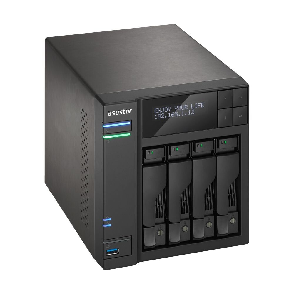 NAS ASUSTOR 4 Bay i3 3.5GHz Dual-Core 2GB GbEx2 HDMI SPDIF PCI-E USB3.1&SATA LCD Panel WOL 3Y WTY